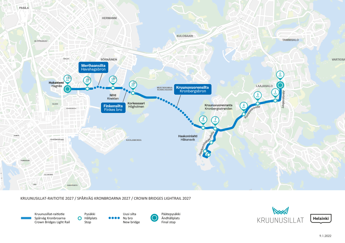 ラーヤサロとハカニエミを結ぶトラムの新路線「Crown Bridges Light Rail」が2027年初頭、開通する。